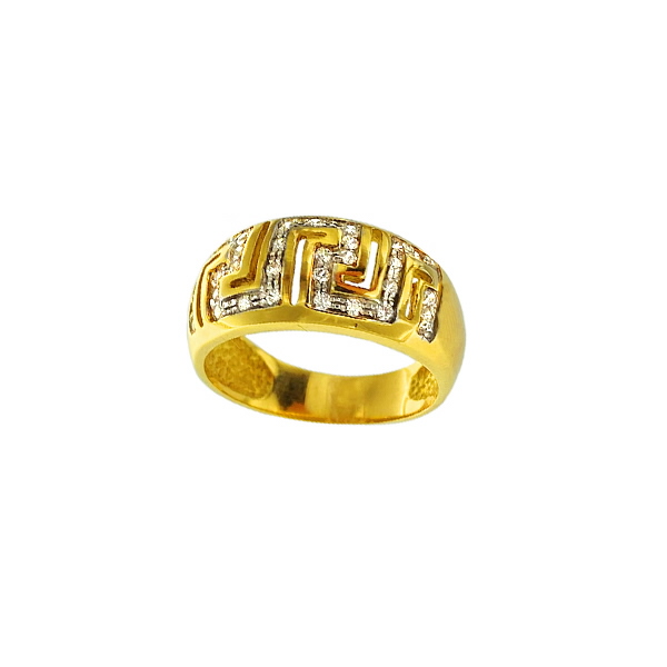 La tendencia de incorporar elegantes siluetas en los anillos de oro cobra fuerza este año. Una muestra de ello es este anillo de oro con diseño de greca donde una espectacular hilera de circonitas se posicionan como protagonistas, añadiendo un toque de individualidad al diseño. Las deslumbrantes circonitas aportan una dosis de elegancia y un brillo único.