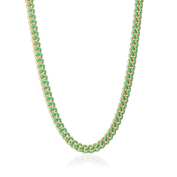 Las joyas de cadenas o eslabones no dejan de reinventarse para seguir incorporándose a nuestros joyeros. Elige este diseño versátil con esmalte turquesa y mézclalo con otras versiones. Las cadenas son tendencia este año y se abren paso entre las «influencers» más populares.