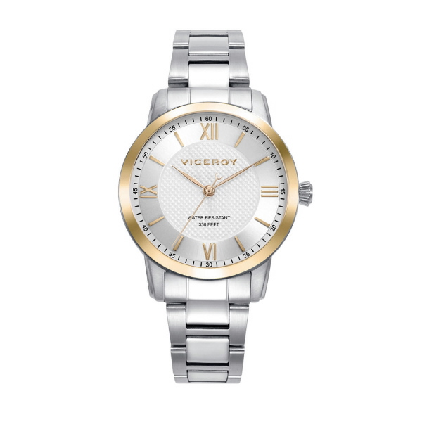 Las tendencias de los relojes Viceroy para mujer muestran una emocionante mezcla de estilo urbano y moderno. Nos encontramos este modelo de inspiración retro, con correa de acero, esfera plateada con marcadores, manecillas y bisel en dorado que infunden un aire fresco y renovado. Será tu aliado perfecto los 24/7.
